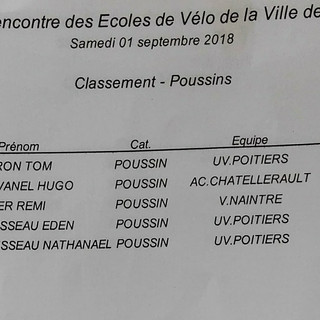 Ce samedi 1er septembre 2018 fût une journée bien remplie pour le staff de l' UV.Poitiers qui organisait la 10ème Rencontre des Ecoles de Vélo de la Ville de Poitiers ".